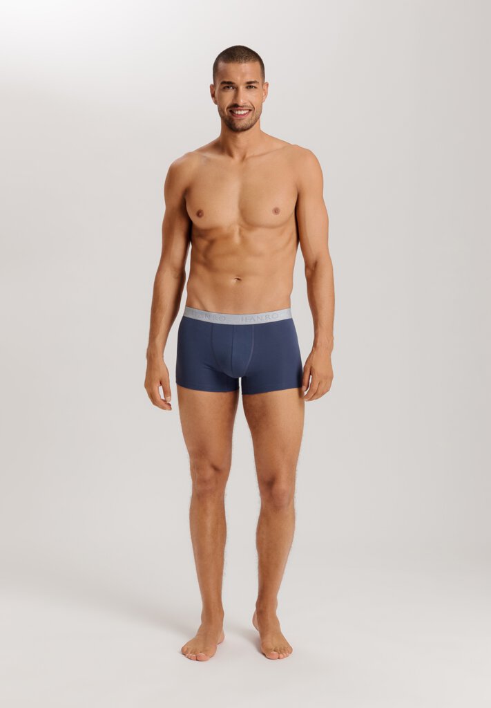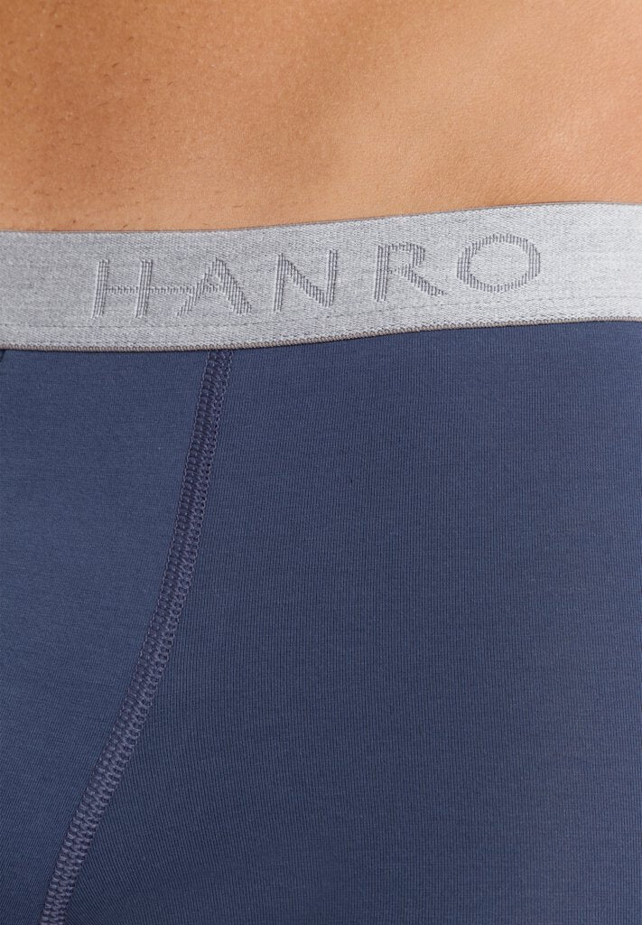 Simple and sporty, the HANRO Cotton Essentials 2-Pack Boxer Briefs are a great Basic that can be worn every day. This men's no-fly boxer brief is now available in new bright colors and basics, and is tailored from fine knit mercerized cotton blended with a touch of elastane for stretch. Slim fit, in a classic trunk design with a lined pouch and soft elastic waistband embossed with the HANRO logo.