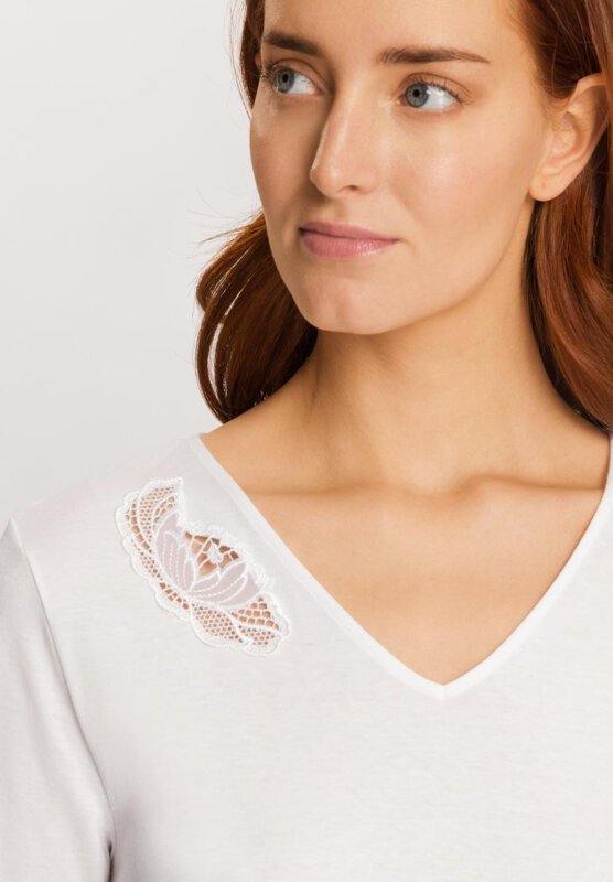 This HANRO nightdress from the Anne range combines pure cotton comfort with a timeless, feminine design. The mercerised interlock from Switzerland combines the best properties and is, for example, moisture-regulating, soft-flowing and easy-care. The embroidery was specially created by our designers and made in Austria. Pure luxury for the skin.