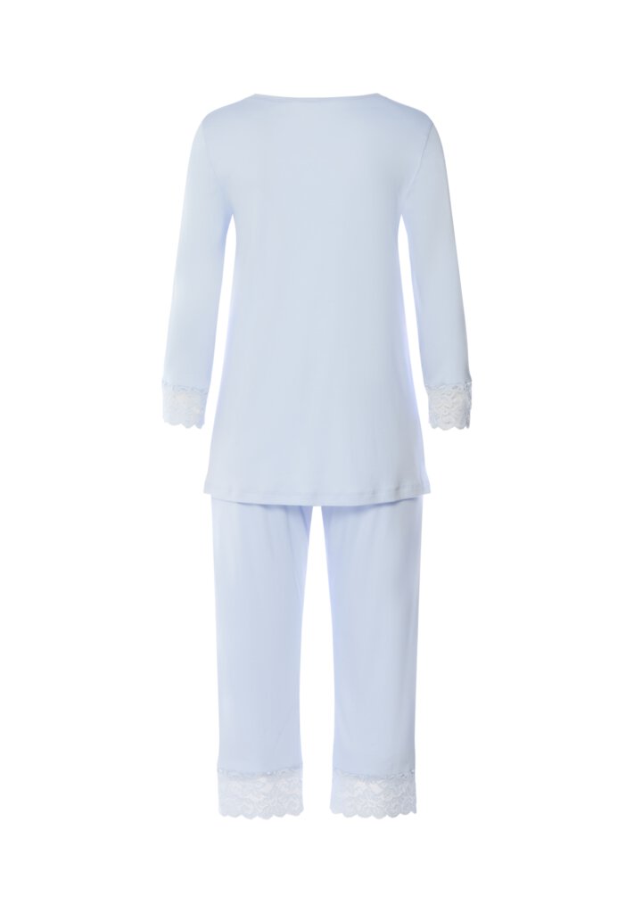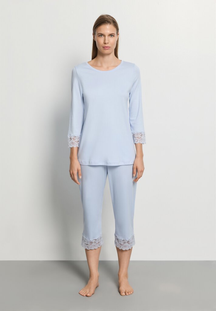Elegant and feminine, the HANRO Moments crop pajama is tailored from 100% mercerized cotton for incredible nighttime comfort. This special set feels wonderful on the skin. Trimmed with lavish lace, feel your best in this special sleep piece or wear it to lounge.