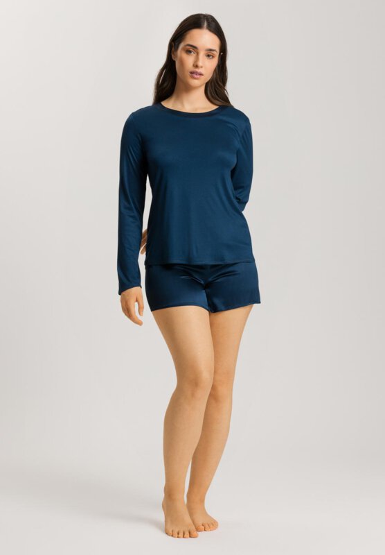 Unser Model ist 179 cm groß und trägt Größe S. Dieses moderne und ebenso zeitlose Langarmshirt aus der HANRO Serie Grand Central ist ein puristisches Fashion Statement und absolutes Must-have – perfekt für Tag und Nacht. Es besteht aus hochwertigem Modal und edler Seide. Mit den passenden Hosen der Serie entstehen ebenso stilvolle Looks wie zu Rock und Jeans: bequem, angenehm leicht und geradezu wohltuend.