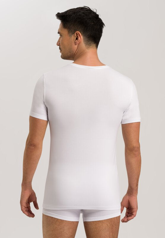 Vielseitig und unkompliziert – das HANRO Cotton Superior T-Shirt mit V-Neck besteht aus langstapeliger, mercerisierter ägyptischer Ghiza-Baumwolle und einem Hauch von Elasthan, der für Flexibilität und ideale Passform sorgt. Dieses T-Shirt mit V-Ausschnitt ist etwas länger geschnitten und kann alleine als T-Shirt oder als Shirt unter einem Hemd oder Pullover getragen werden.