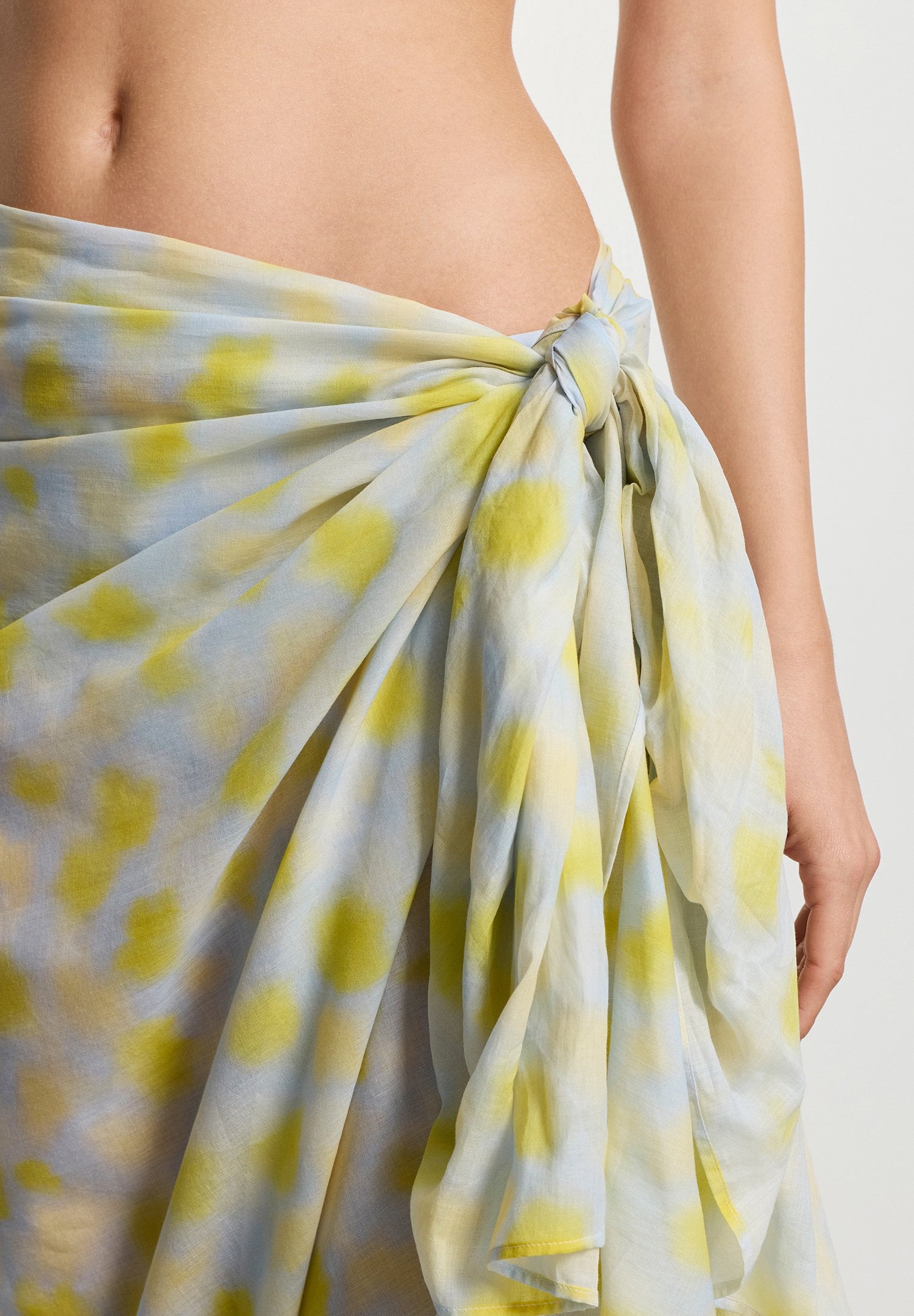• Hellblau-gelb gemusterter Pareo aus 100 % atmungsaktivem Baumwollbatist