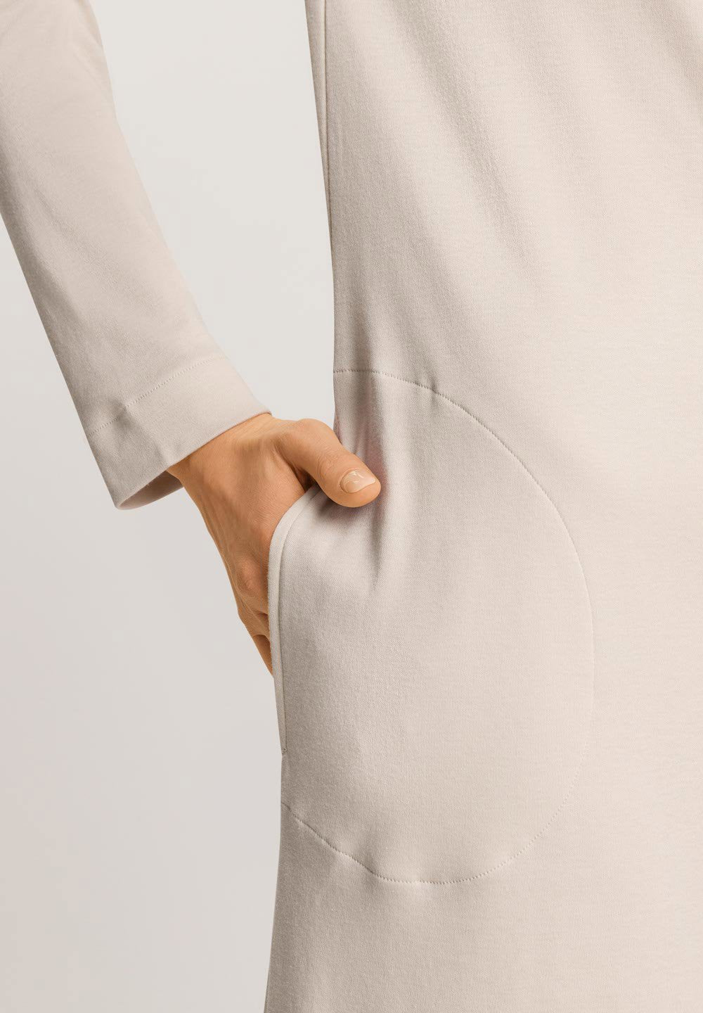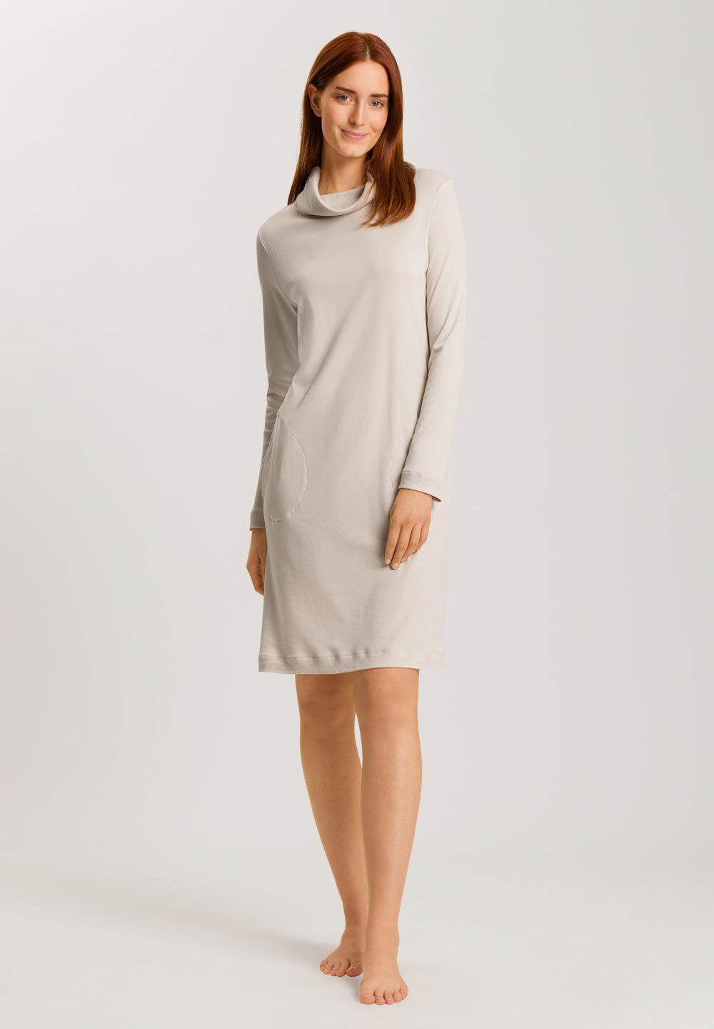 Dieses HANRO Nachthemd mit langen Armen aus der Serie Agatha verbindet schlichtes Design mit aufregend hohem Komfort. Softer Baumwoll-Interlock umhüllt natürliche Kurven auf angenehme Weise. Taschen, maximal kuschelige Innenseiten und der modische Umschlagkragen runden den Nachtwäsche-Look perfekt ab. Damit sorgt das Kleid auch tagsüber für Wohlfühlmomente.