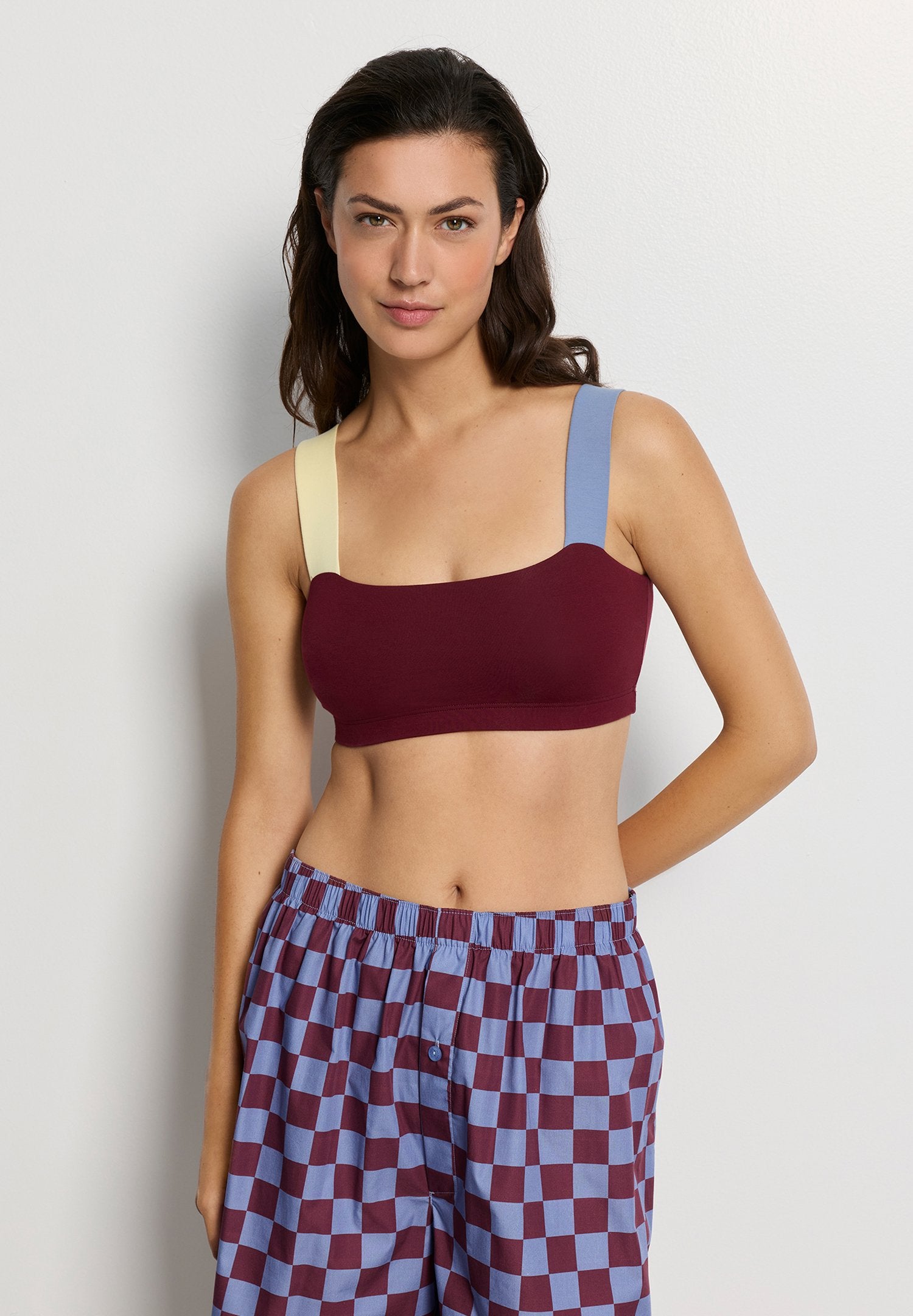 Color-Blocking at it‘s best präsentiert der in Österreich geborene Designer Arthur Arbesser mit diesem farbenfrohen Crop Top für HANRO atelier. Rundum zweilagig gearbeitet schmiegt sich der beliebte Single-Jersey aus Baumwoll-Elasthan-Mix MADE IN AUSTRIA an die Brust. Zwei breite Träger in unterschiedlichen Farben sowie ein elastisches Unterbrustband geben verlässlichen Halt im Alltag. Der Bandeau-Look ohne Körbchennähte setzt ein Statement als Unterwäsche, Sport-Bustier bei leichter Bewegung oder ausdrucksstarkes Oberteil zu High-Waist-Röcken und Hosen.
