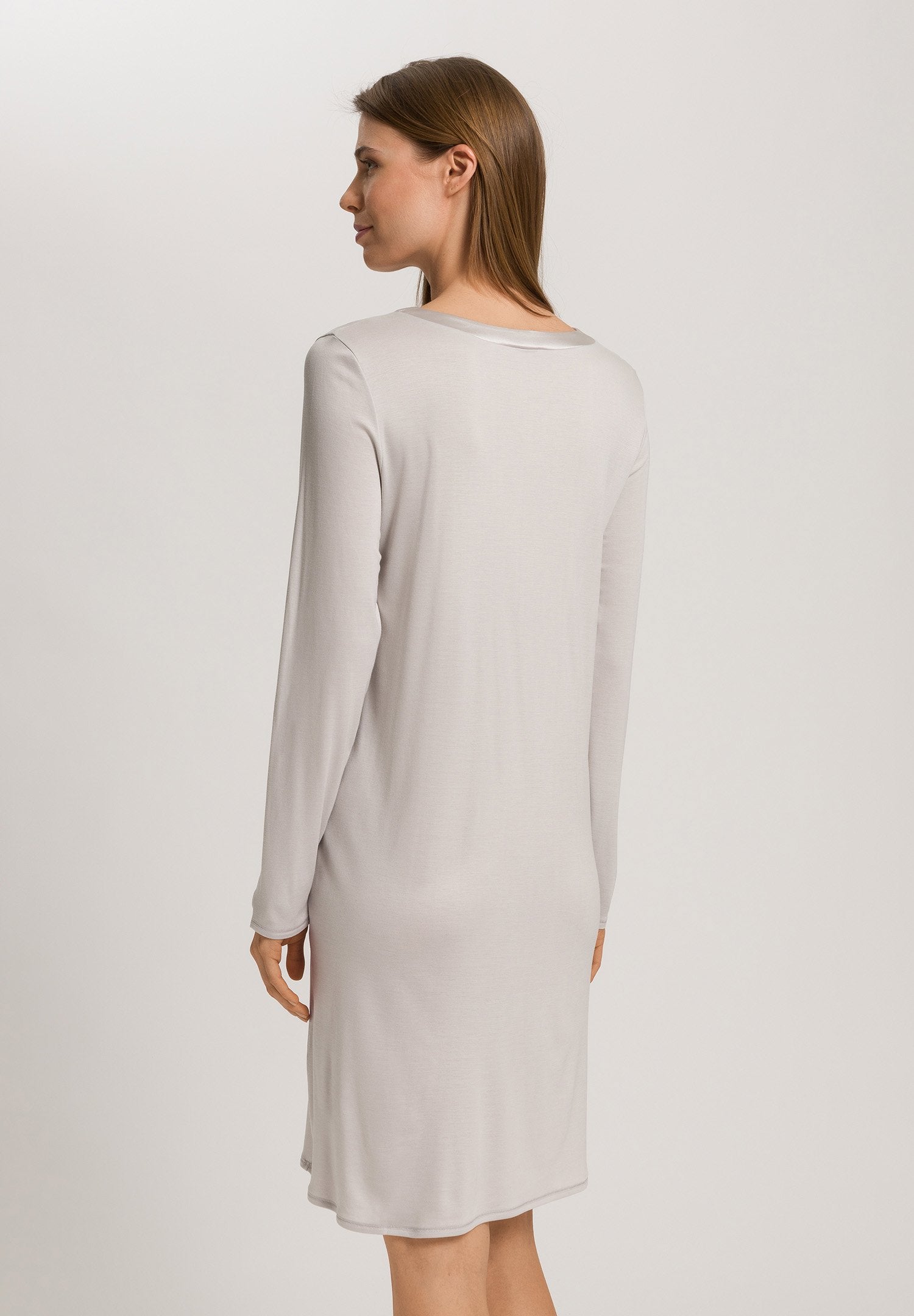 • Schlichtes Rundhals-Nachthemd mit langen Ärmeln und Seideneinsatz am Ausschnitt