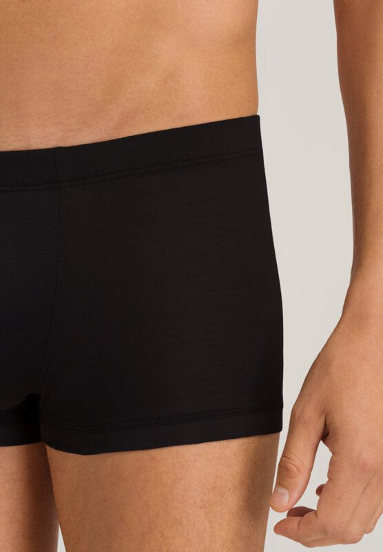 Un básico moderno, el calzoncillo bóxer Sporty de algodón sin vuelo está confeccionado en algodón mercerizado 100%. La bolsa forrada y el elástico en la cintura y las perneras proporcionan un ajuste óptimo y una elegante colocación bajo la ropa. La suave cinturilla elástica lleva el logotipo de HANRO en el interior. La pernera ligeramente más larga de este calzoncillo bóxer para hombre resulta especialmente favorecedora para los hombres más altos.