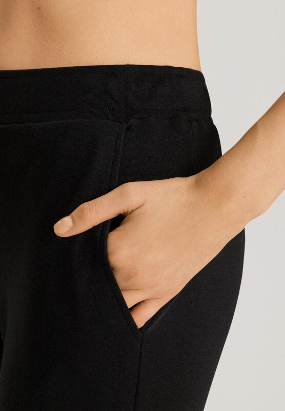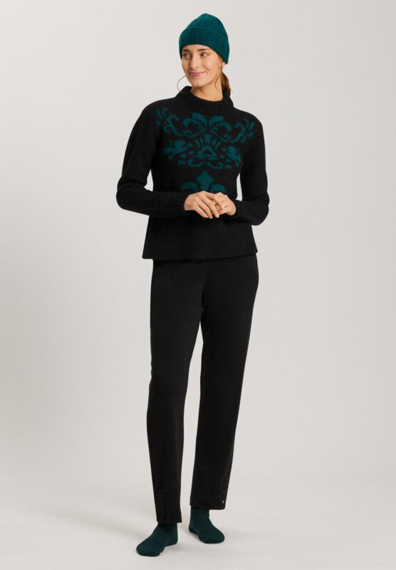 Este pantalón de mujer de la gama Marlene de HANRO encarna la elegancia, la exclusividad y un confort óptimo. Tiene un corte recto, bolsillos y cintura elástica. La parte trasera tiene volantes y la delantera es lisa. Destacan los bordados de producción propia. Los jerséis o las chaquetas de la gama completan el look de maravilla.