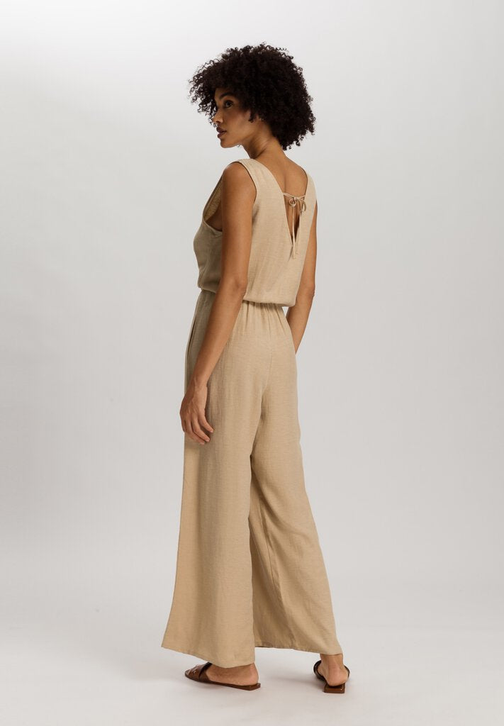 ¡Los monos se han convertido en una parte integral de nuestro armario de verano! Este modelo sin mangas con perneras algo más cortas destaca por su moderno lazo en la espalda. El escote en V en la parte trasera es ligeramente más profundo que en la parte delantera. Además, este mono tiene un corte holgado e informal gracias a su cómoda y estrecha cintura. La mezcla de lino resulta sedosa y agradablemente ligera sobre la piel. Este tejido especial deja pasar el aire y la humedad, y tiene un efecto refrescante y antiestático. La viscosa y el cupro confieren al diseño prêt-à-porter un brillo natural y garantizan que el tejido se arrugue menos que el lino puro.