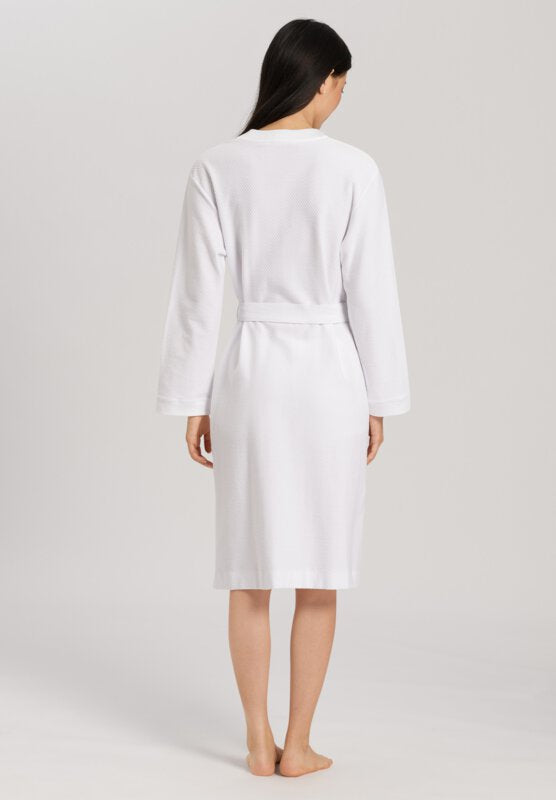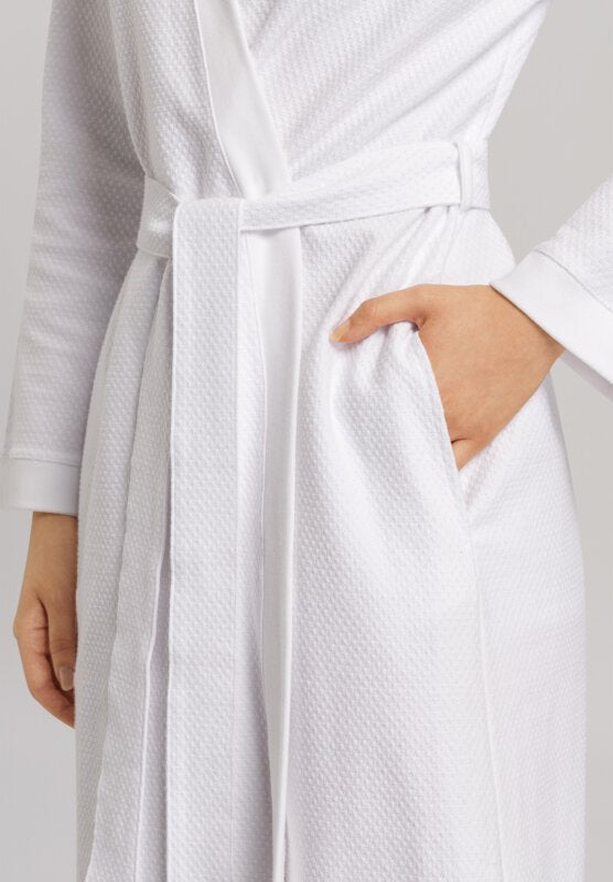 Parte de una nueva línea de básicos de HANRO, el albornoz New Basic Cotton Pique está confeccionado en piqué de algodón 100% sublimemente suave, y presenta un ligero estilo spa ideal para viajar o para llevar junto a la piscina. Un lazo para el cinturón y bolsillos laterales ocultos añaden practicidad diaria, haciendo que esta bata limpia y básica sea tan versátil como cómoda.
