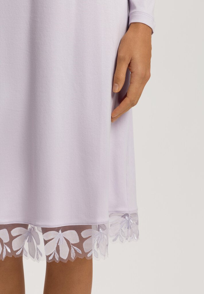 Flores de filigrana de gasa sobre delicado tul adornan la cinta bordada del bajo de este camisón de manga larga. Esta exclusiva prenda ha sido creada por el equipo de diseño de HANRO en Austria y se ha fabricado a nivel local. El tejido de algodón mercerizado MADE IN AUSTRIA envuelve suavemente el cuerpo y crea una silueta femenina. Esta refinada fibra natural es popular por su brillo, su capacidad para transportar la humedad y su durabilidad. Combinado con la bata a juego, el resultado es un gran efecto de transparencia.
