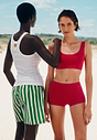 Para estas dos bragas HANRO x ADAM se utilizan colores universitarios claros: rojo cereza y azul marino. Las bragas de canalé fino con perneras ligeramente más largas abrazan el cuerpo de forma agradablemente suave. Además, la microfibra de producción propia es conocida por su ligereza y estabilidad dimensional. La versatilidad de estas braguitas con una etiqueta exclusiva de la marca las convierte en un popular compañero de viaje: se pueden llevar como ropa interior, braguitas de bikini y shorts de yoga. Además de los dos crop tops del mismo tejido, esta prenda puede combinarse de maravilla con todos los demás artículos de la colección cápsula.
