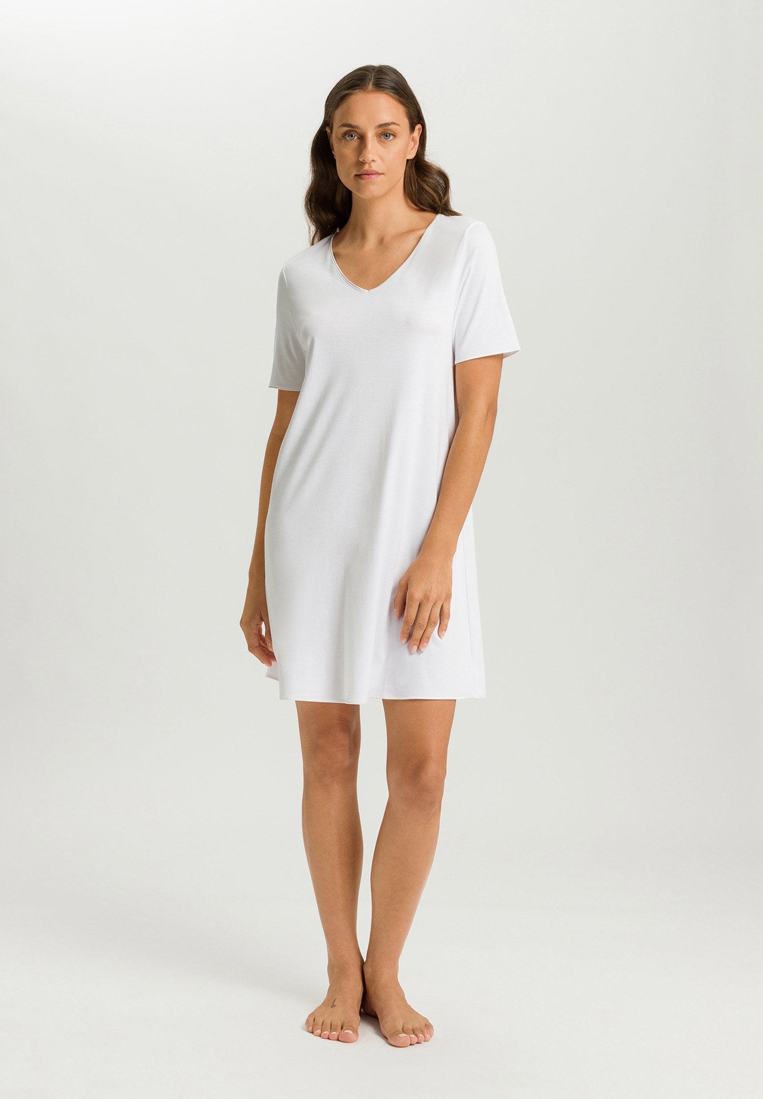 Este camisón de media manga, con una ligera forma de A, combina el máximo confort para dormir con un diseño elegante y atemporal. Los detalles de seda auténtica aportan un brillo femenino al moderno cuello en V, los puños y el dobladillo. El algodón Interlock, especialmente suave, realza los detalles de seda con su propio brillo, con el característico acabado de alta calidad MADE IN AUSTRIA. Además, el proceso de mercerización garantiza una mayor durabilidad. Esto hace de este camisón un clásico con una larga vida útil: ¡para que la sostenibilidad llegue hasta su ropa de dormir!