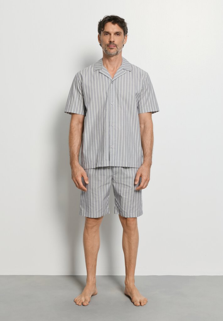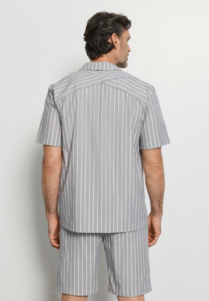 Les tenues d'intérieur de style « Dayjama » nous permettent de passer directement du lit à la plage, puis au bar. Cette nouvelle interprétation moderne de la tenue d'intérieur rend cette chemise à manches courtes si attrayante, surtout lorsqu'elle est combinée au pantalon long ou au short. Des éléments classiques du design masculin, tels que le col à revers et la patte de boutonnage sur toute la longueur, confèrent à cette chemise à manches courtes, légère et aérienne, en popeline exclusive, un caractère élégant. La matière infroissable FABRIQUÉE EN AUTRICHE en 100 % coton est idéale pour l'été et présente de fines rayures tissées avec une structure 3D.