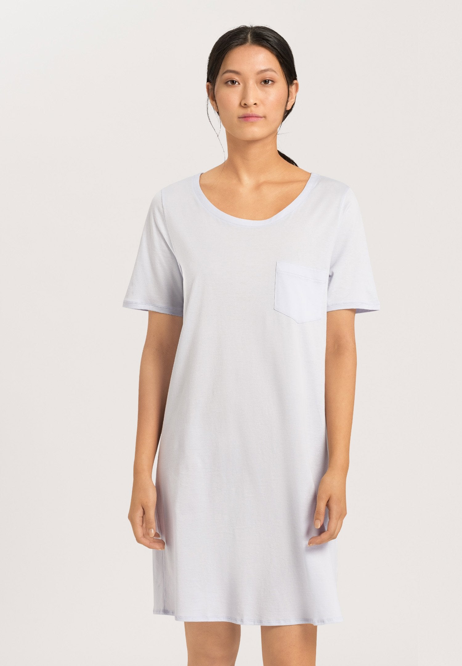 Moderne et polyvalent, le HANRO Cotton Deluxe Short Sleeve Bigshirt combine un style tendance et une praticité moderne. Confectionnée à partir de 100% coton PIMA mercerisé, cette chemise de nuit pour femme jusqu'aux genoux dispose d'une poche poitrine plaquée et d'un jeu de biais subtil. Cette chemise de nuit offre un look tendance et pratique avec une occasion de porter multiples pour la détente ou pour dormir.