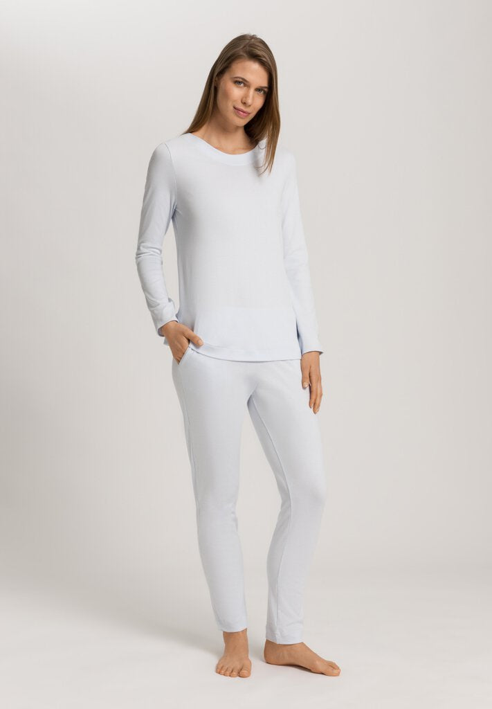 Questo pigiama in 100% cotone spazzolato è soffice e sfoggia un look contemporaneo. Un autentico bestseller: il morbidissimo tessuto interlock di nostra produzione è delicato sulla pelle, traspirante e stabile nelle forme. La maglia a maniche lunghe propone un comodo collo rotondo. Due tasche per mani sui lati dei pantaloni a gamba lunga garantiscono una vestibilità estremamente confortevole. Entrambi i pezzi possono essere indossati insieme come un elegante completo da notte per godersi il relax o indossati singolarmente.