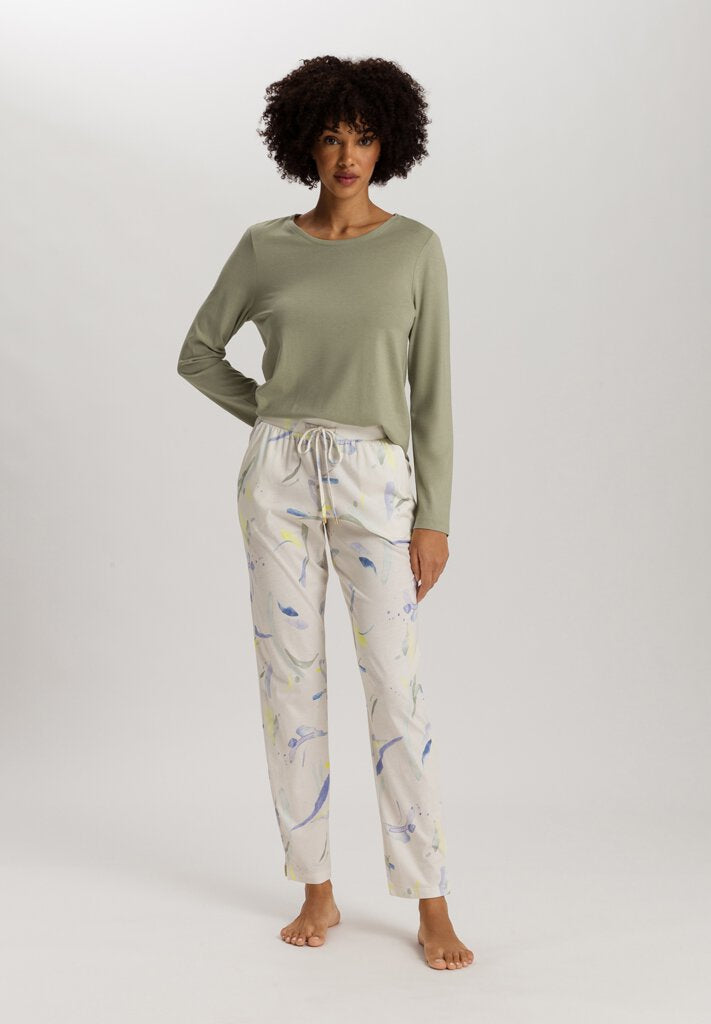 Questo top da donna a maniche lunghe della linea Sleep &, Lounge di HANRO è di qualità notevolmente elevata e garantisce una speciale sensazione di benessere in ogni momento. Il morbido single jersey è realizzato in cotone e fibre modali TENCEL™ con le migliori proprietà di vestibilità. Per completare il comfort, i pantaloni della gamma e i jeans Natural Living sono l'abbinamento perfetto.