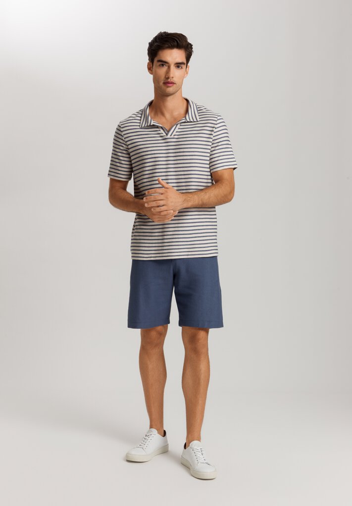 Il motto di questi bermuda è: "100% naturale per una sensazione di benessere completa". Realizzato in felpa leggera con una trama strutturata e strisce marinare, questo capo lounge informale è perfetto per completare il Suo guardaroba per le vacanze e il tempo libero. Il taglio comodo, il comodo girovita con coulisse e le due tasche conferiscono ai pantaloncini un tocco sportivo. Realizzati al 100% in french terry di cotone biologico, questi pantaloncini sono morbidi sulla pelle e garantiscono un look semplice e giovanile durante tutta la stagione estiva.