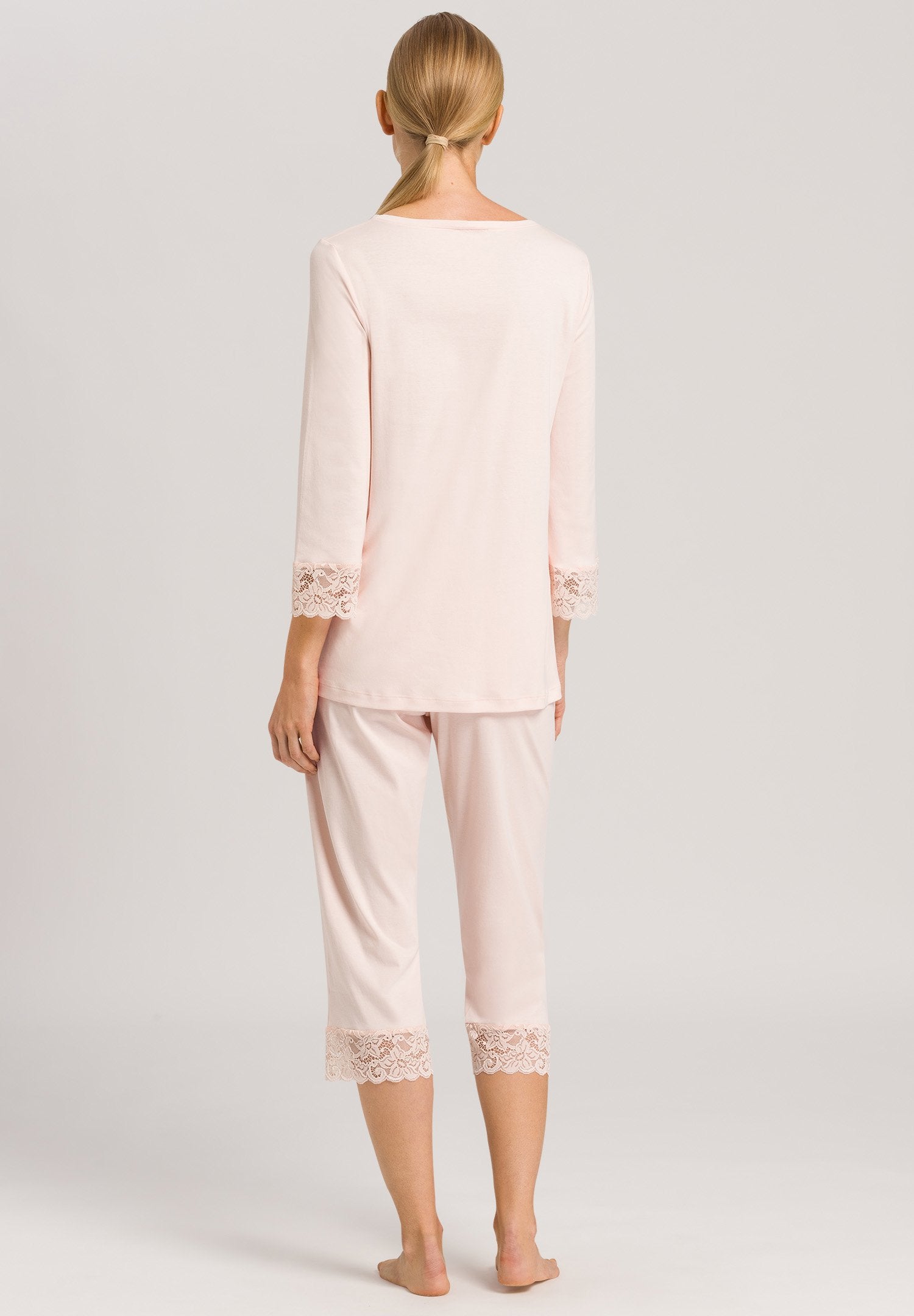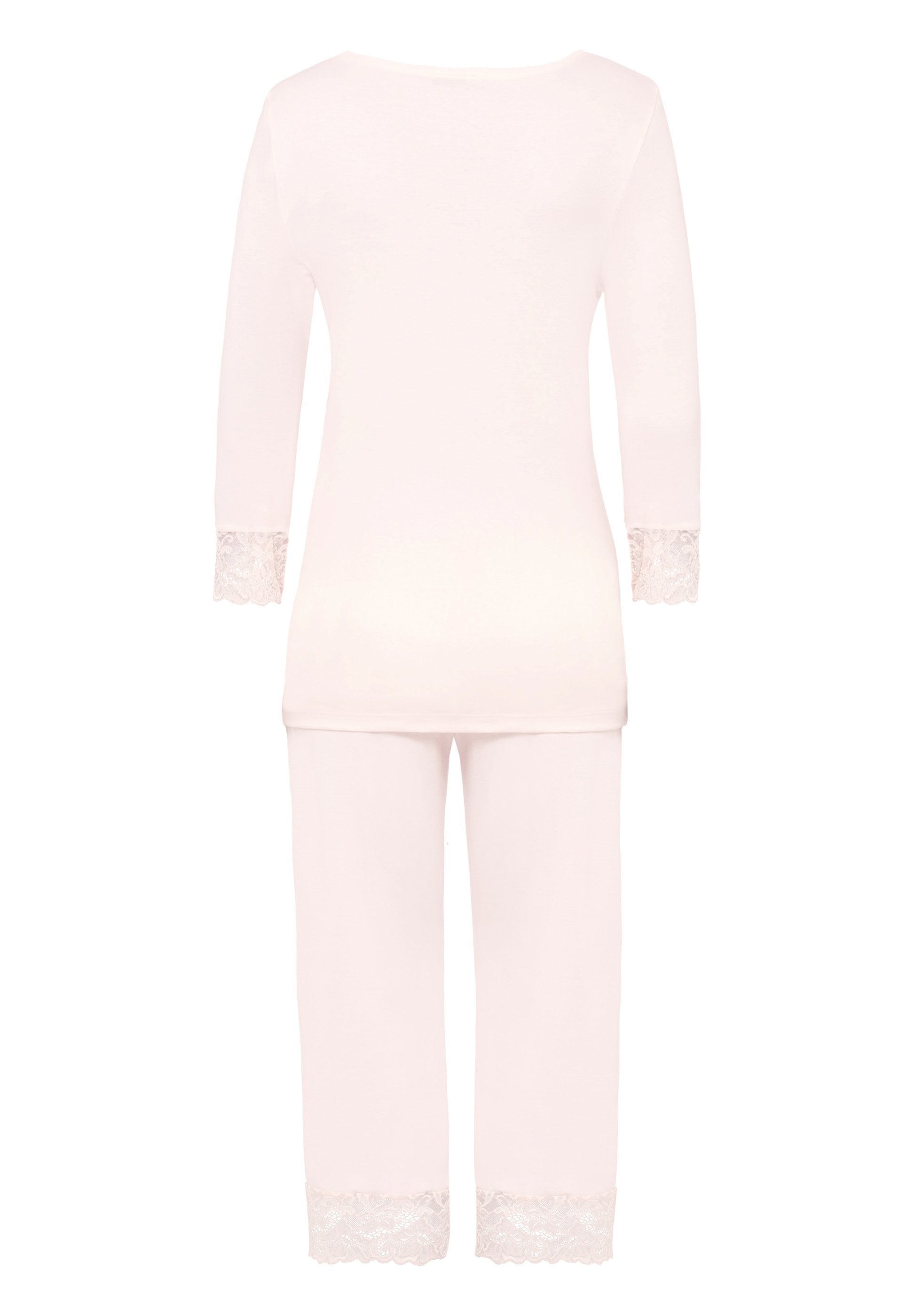 Incantevole eleganza femminile: biancheria da notte alla moda della linea MOMENTS, in un nuovo tessuto interlock particolarmente soffice, realizzato in cotone mercerizzato e morbidamente drappeggiato. Il punto forte di questo splendido pigiama da donna sono le raffinate rifiniture in pizzo sui polsini e sulle gambe.
