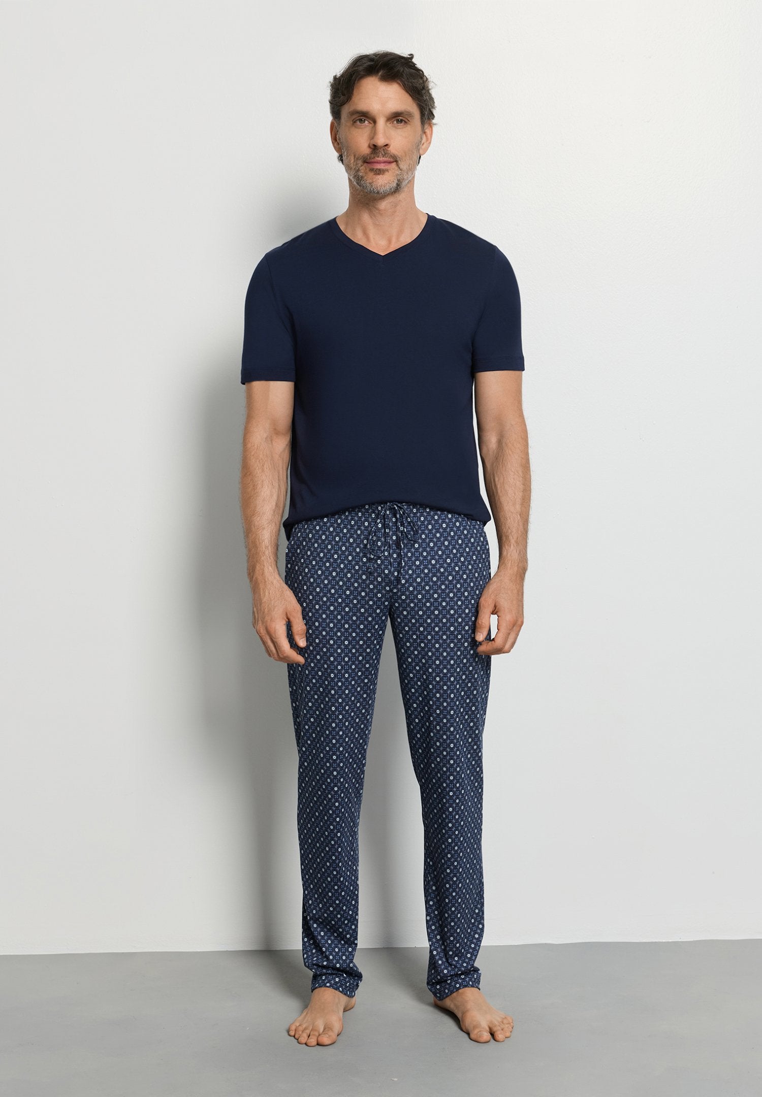 Questi pantaloni lunghi, realizzati al 100% in morbido cotone interlock sono comodi sia di giorno sia di notte. La fibra naturale convince gli amanti del cotone per la sua traspirabilità, delicatezza sulla pelle e durabilità. Per questo motivo, questi pantaloni con stampa sobria sono molto apprezzati sia come loungewear sia come pigiama. La coulisse e le due tasche assicurano una vestibilità comoda durante tutta la giornata. Con le maglie basic in tinta unita della gamma Mix & Match, è possibile creare look individuali per il tempo libero e completi da notte in base al proprio gusto personale.