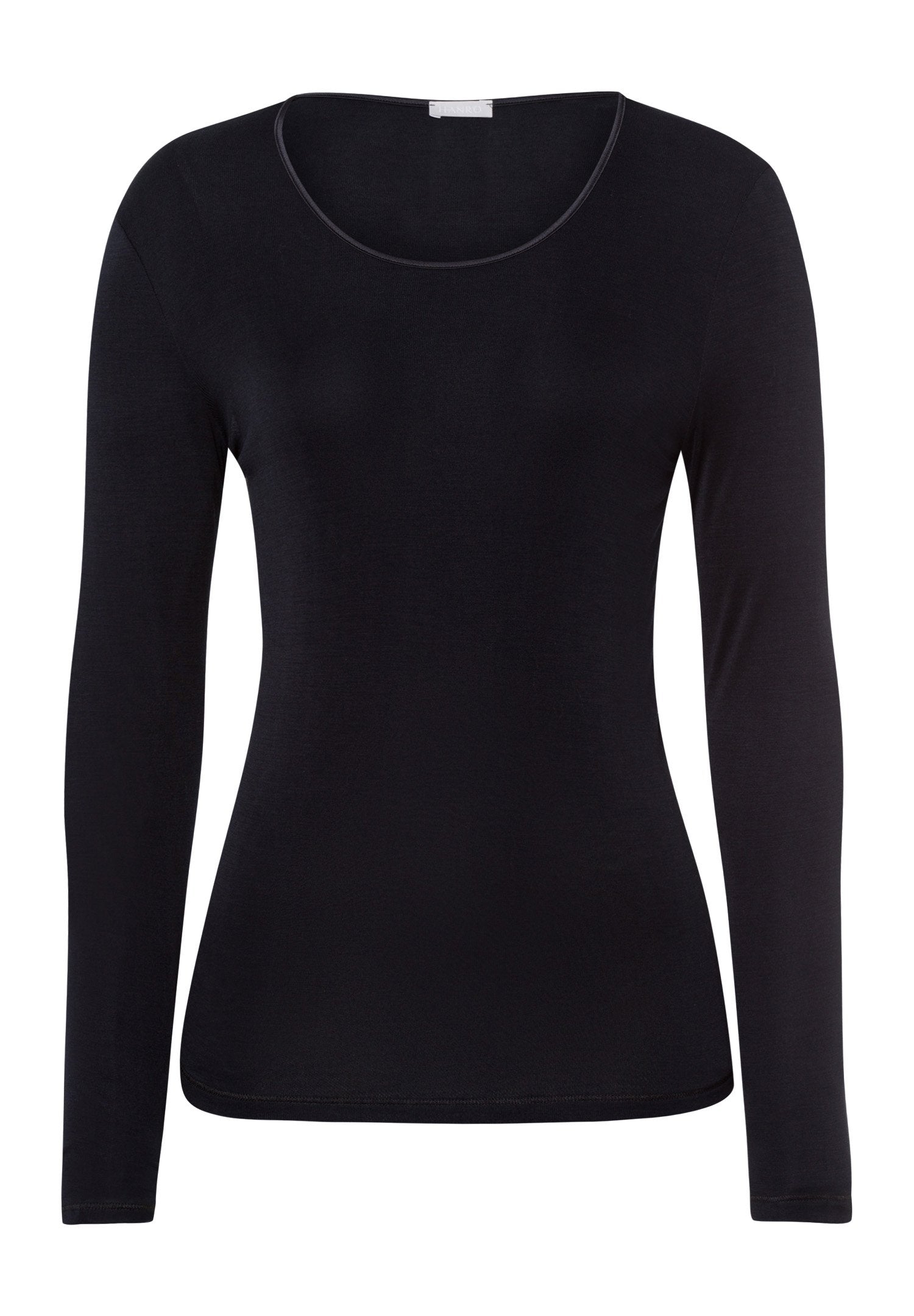 The classic style of the HANRO Pure Silk Long Sleeve Shirt makes it ideal for wearing on its own. The sleek profile, satin-trimmed, scooped neckline and longer length also make it a versatile choice for flattering layering beneath a blouse of jacket. Part of the HANRO Pure Silk Collection, this long sleeve shirt is tailored from an innovative fine rib knit of 100% silk with seamless sides.Temperaturebalancing, 100% silk fabric makes it a perfect choice for sleep, lounge, layering or thermal underwear.